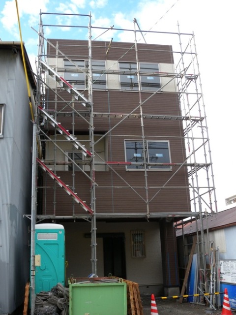 静岡市葵区、鉄骨3階建て住宅の外壁サイディングの施工を行っています