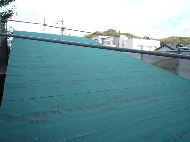 静岡市葵区東町 О様事務所新築現場 屋根の防水シート貼り♪