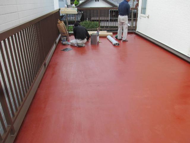 鉄骨で作ったバルコニー、防水工事の様子です。