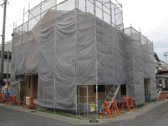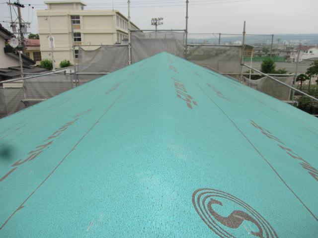 静岡市駿河区南八幡で屋根に防水シートの施工中です
