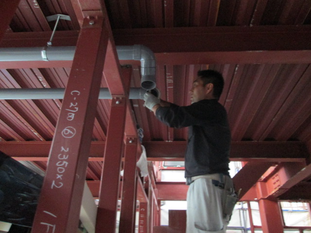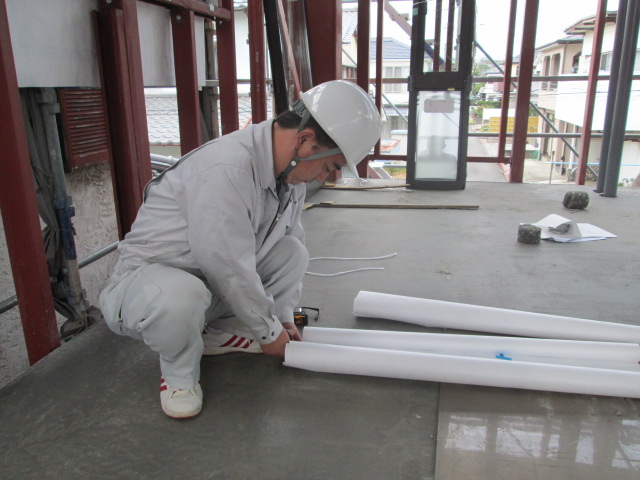 静岡市清水区相生町、鉄骨住宅3階建ての窓の取り付けと防水テープ巻きの作業を行っております。