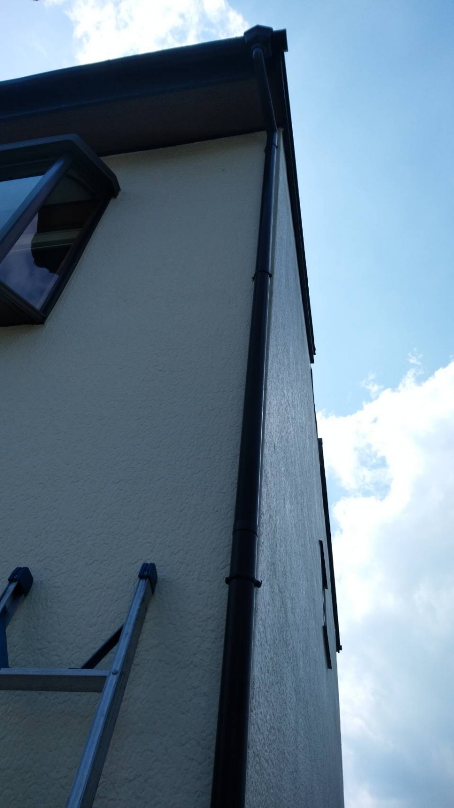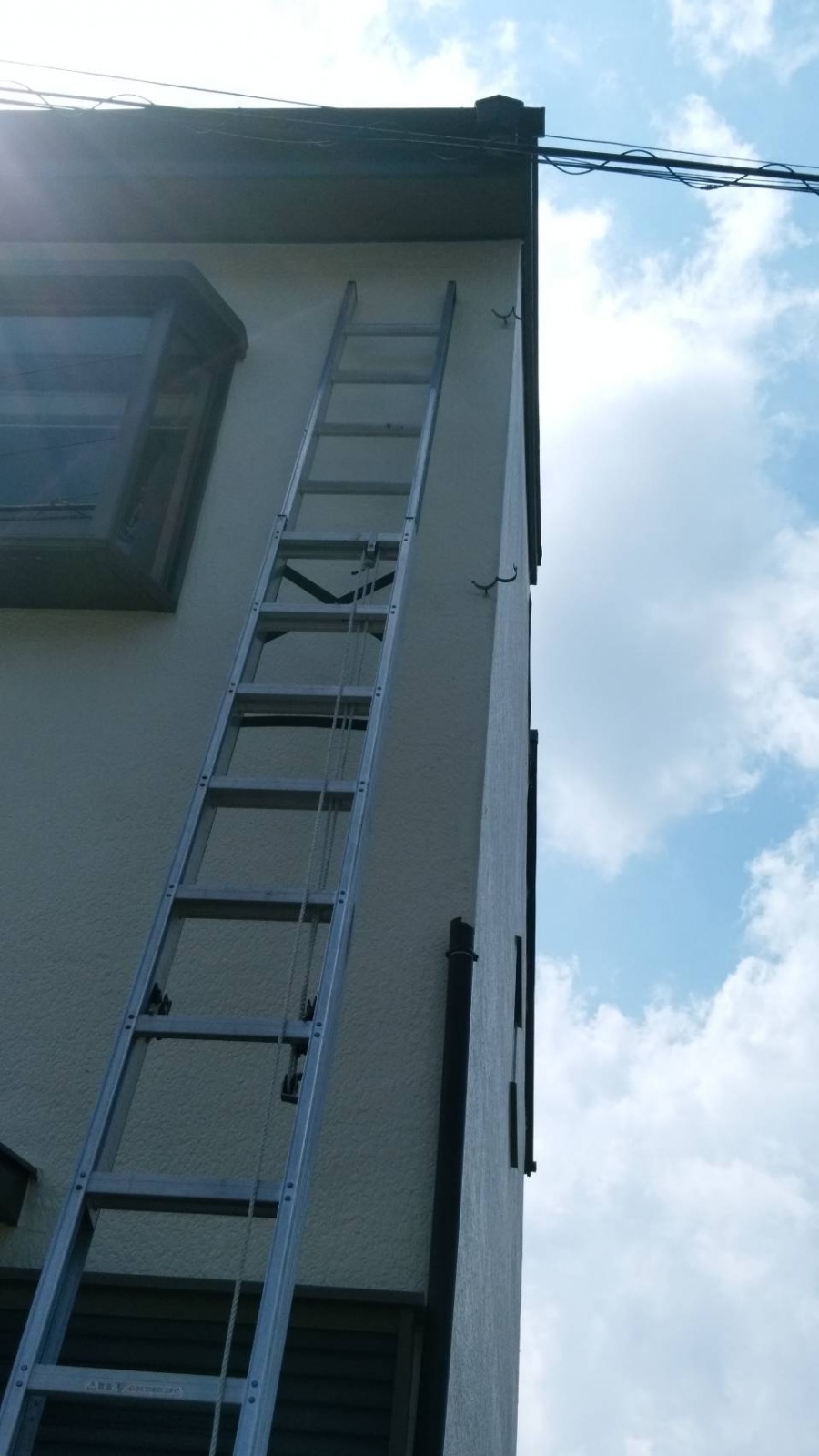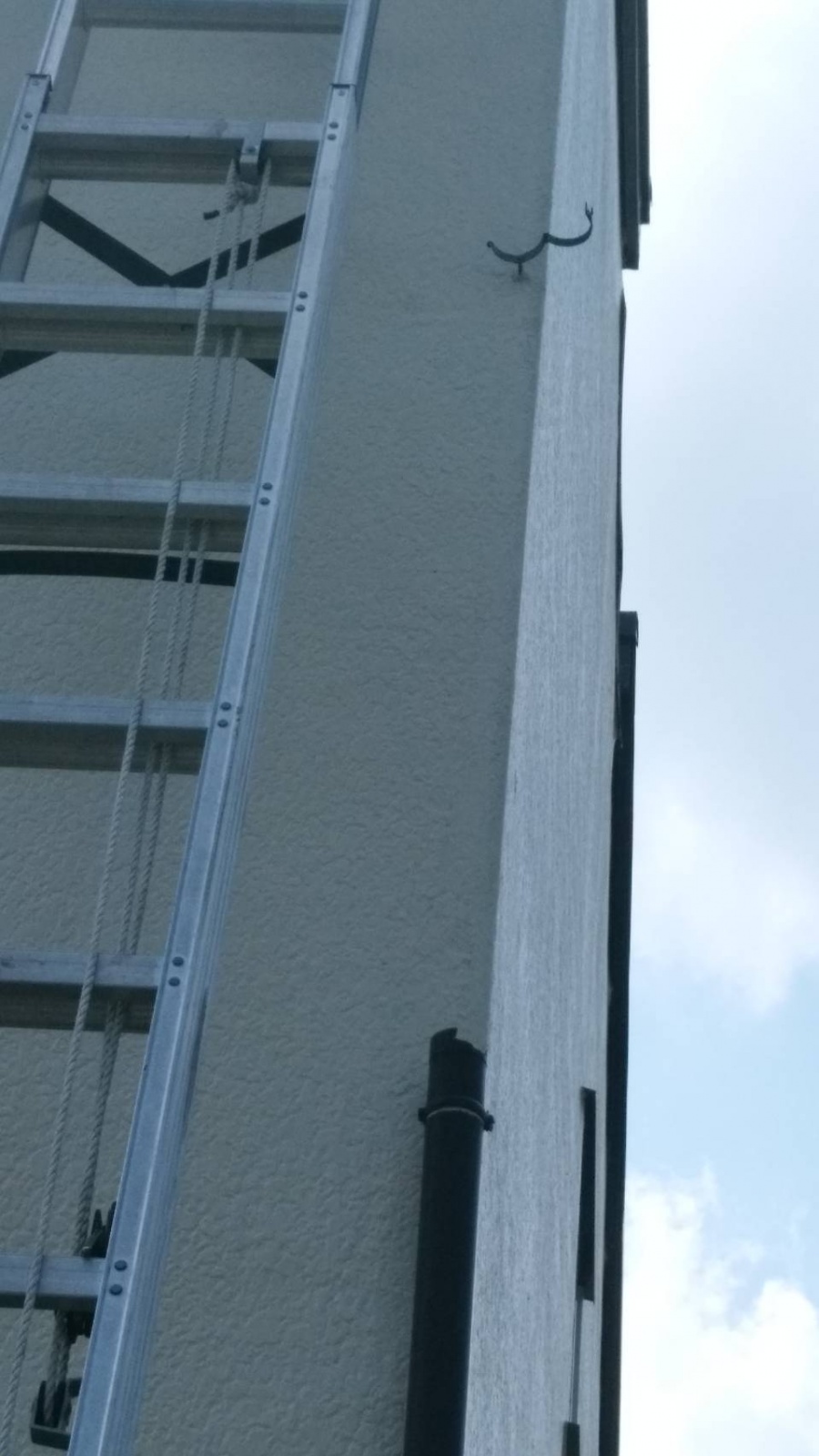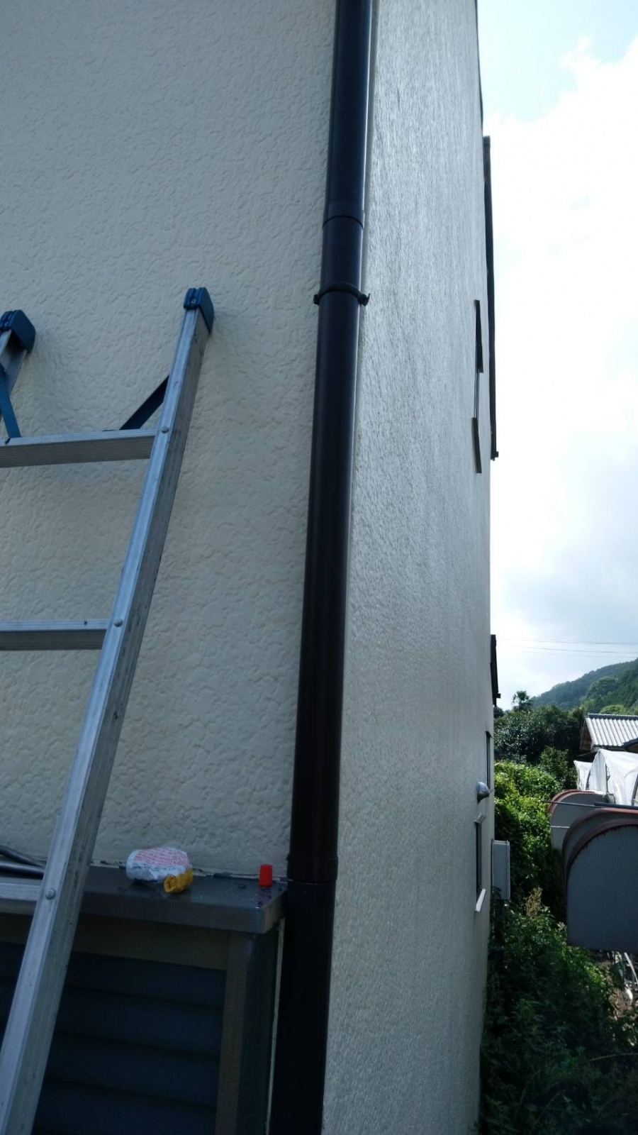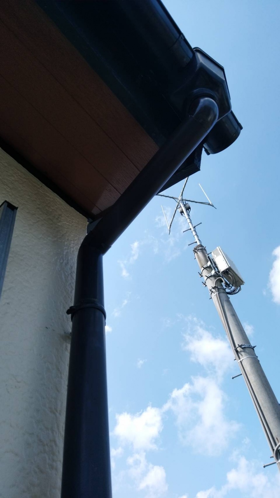 葵区羽鳥本町 台風のような強い雨風で ベランダの屋根と竪樋が破損