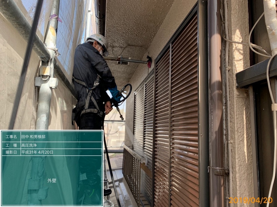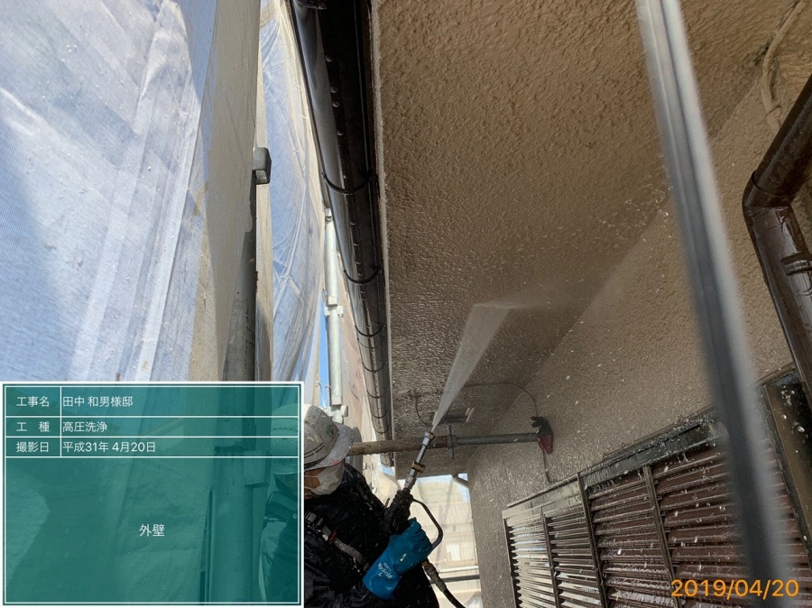 本日塗装前の大事な高圧洗浄の施工です!