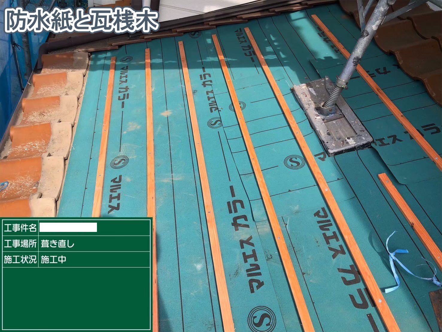 瓦桟木に瓦を引っかけて固定すれば屋根の葺き直し工事完了です☆