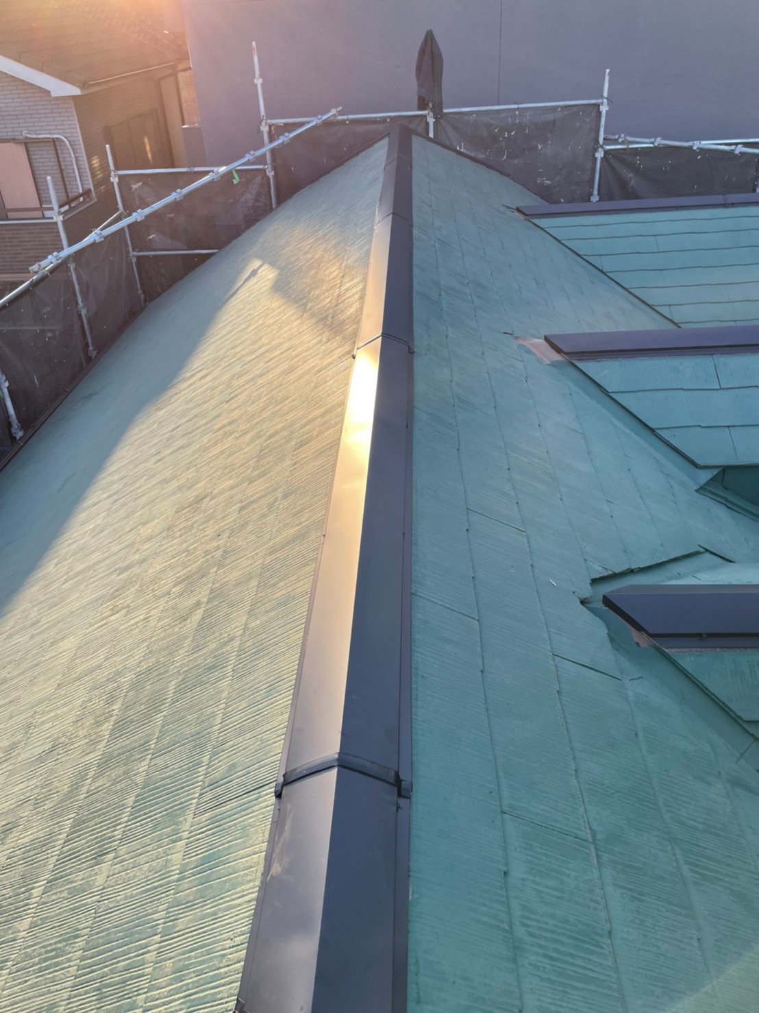 新しい棟板金がしっかり固定され、屋根のラインが引き締まりました✨
