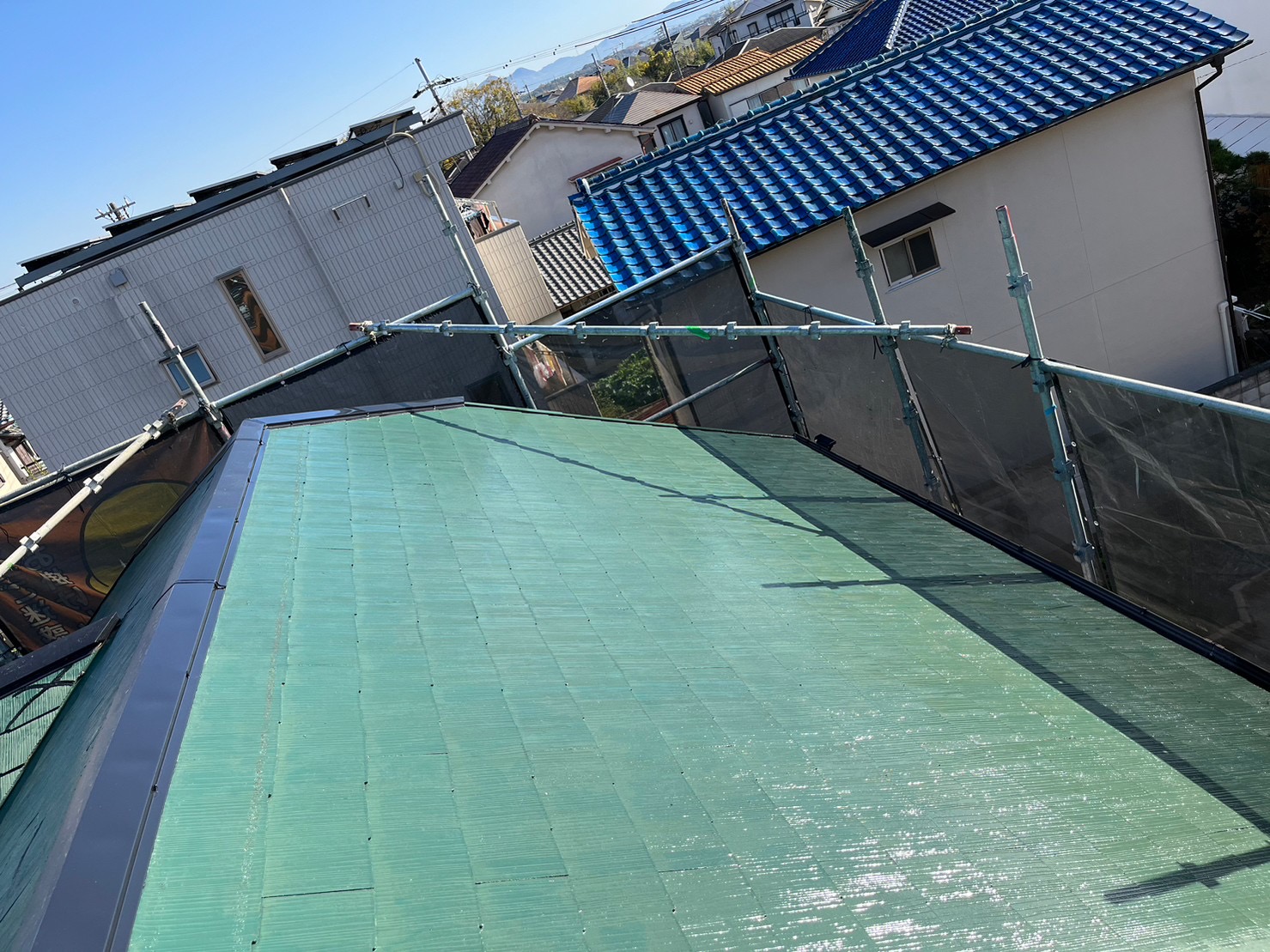 下塗りは、屋根塗装における最初の塗装工程で、屋根材と塗料をしっかり密着させるための「土台づくり」です。下塗りがしっかりされていないと、塗膜がすぐに剥がれたり、仕上がりにムラが出たりする原因になります。