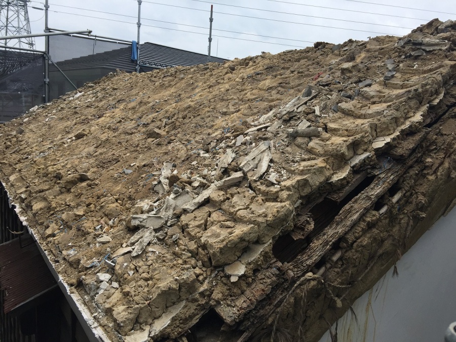 埼玉県川越市の土蔵屋根葺き替えで土葺きの瓦と土の撤去完了!