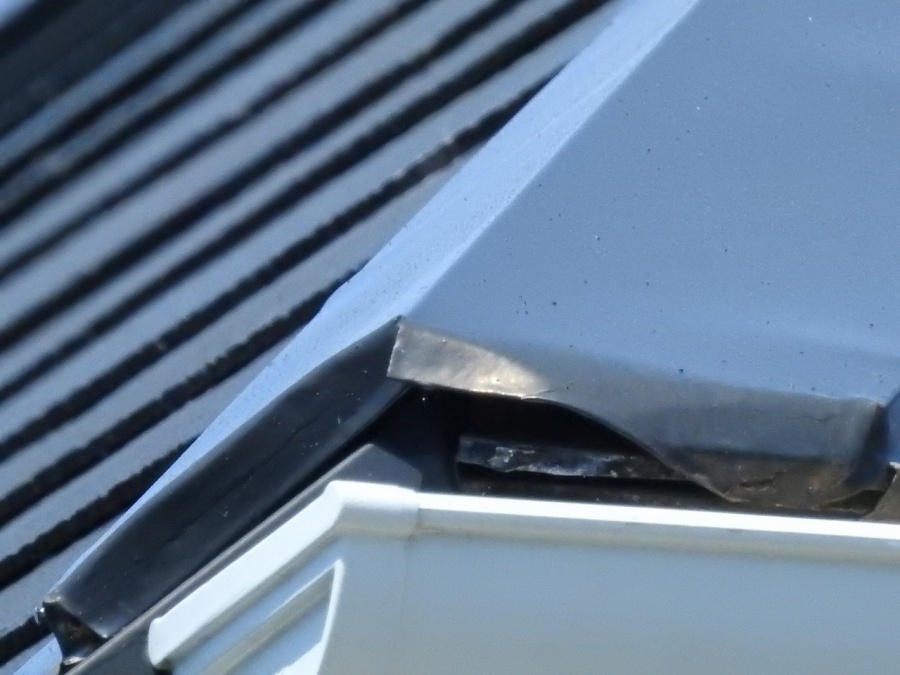屋根を調査すると棟板金の先端が開いた状態で、良くない状態です。