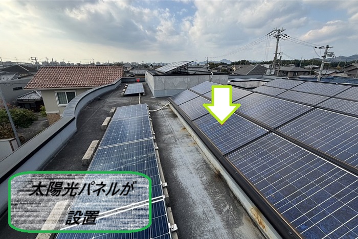 今回点検した陸屋根には、複数の太陽光パネルが設置されていました☆