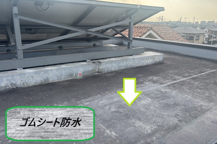陸屋根にはゴムシート防水が施工されており、のちに太陽光パネルが設置されたとの事でした(。・∀・)