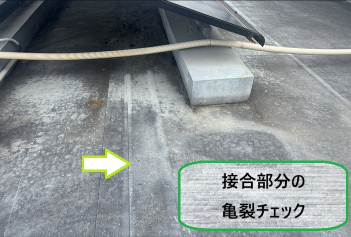 ゴムシート防水を点検するときは、つなぎ目のジョイント部分を特に念入りにチェックします🔍