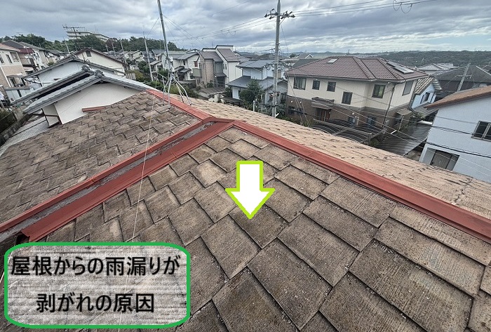 宝塚市 屋根からの雨漏りで木製軒天に剥がれ発生!原因を無料調査