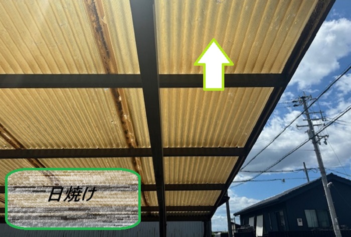 伊丹市 塩ビ製波板の貼替をご相談!日焼けしたガレージ屋根を無料調査