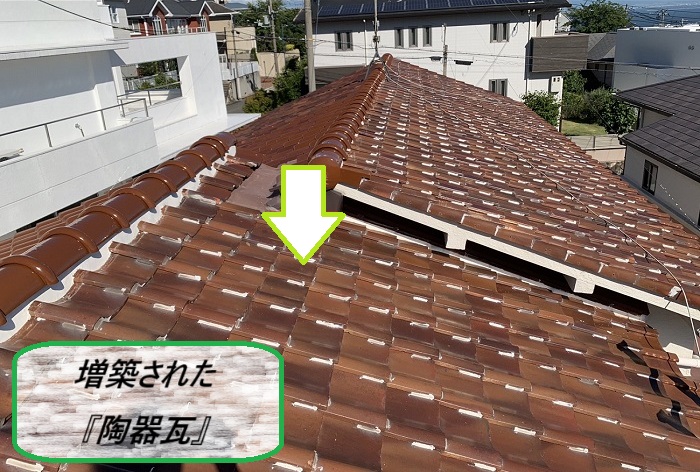 増築部分の瓦屋根は、既存の屋根と新たに増設された部分が重なり合う構造になっていました👥