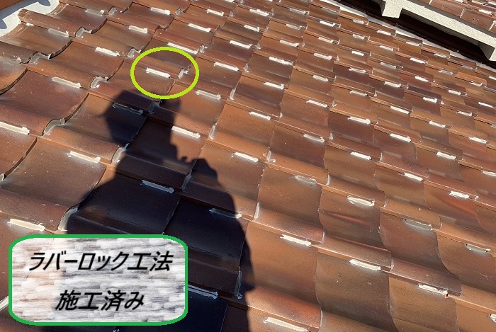 また、こちらのお家にはラバーロック工法も採用されていました(. ❛ ᴗ ❛.)この工法は、瓦の隙間にシーリング材を注入して瓦のズレを防ぐ方法で、そのおかげで、瓦の飛散やズレを抑えるだけでなく、雨水の侵入も防げちゃう🛠️
