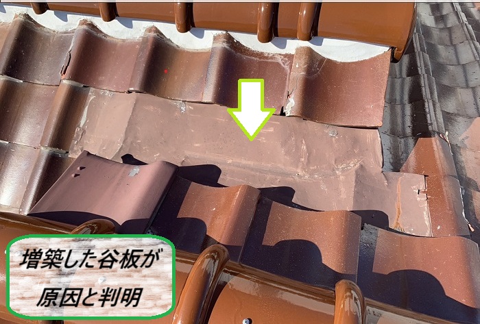 【 雨漏りの原因と葺き替えの必要性 】雨漏りの直接的な原因は、増築した部分の谷が劣化してしまったから‼