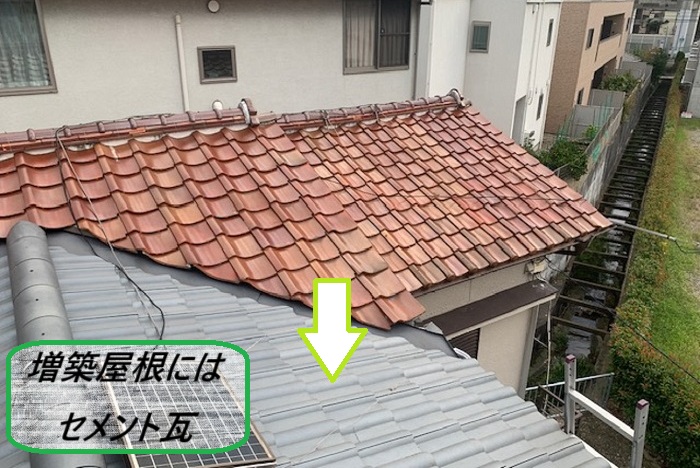 今回のケースでは、本屋根に塩焼き瓦、増築部分にセメント瓦という異なる屋根材が使われてたせいで、継ぎ目にズレができて、そこから雨水が入り込む結果に…💀