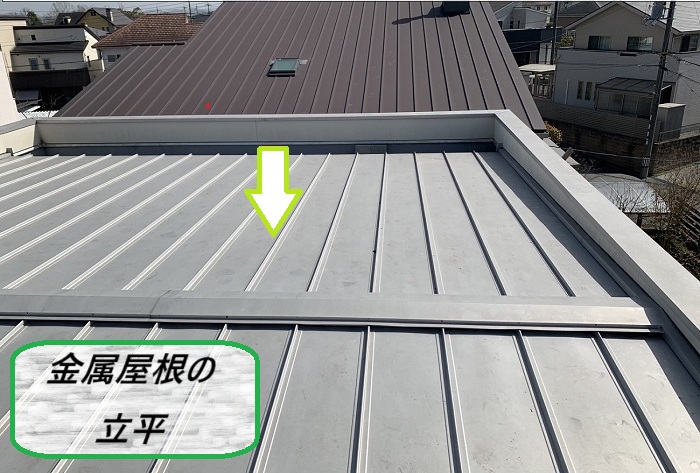 屋根材には金属屋根の立平(たてひら)が使われていて、周囲はパラペットで囲まれた構造でしたよ🎵
