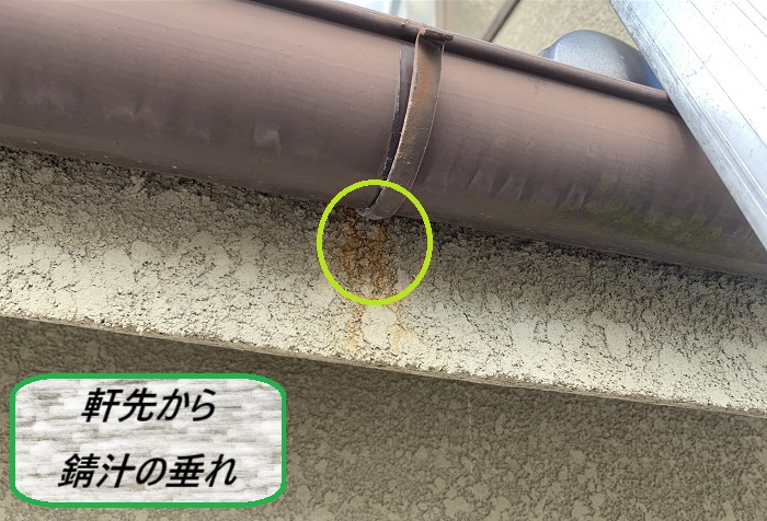 この〇部分なんですが、雨樋の固定金具の根元から錆汁が垂れていましたよ😱