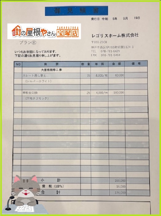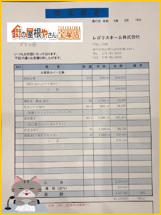 神戸市須磨区 【見積書大公開】寄棟 屋根カバー工法/屋根部分補修(面積85㎡)