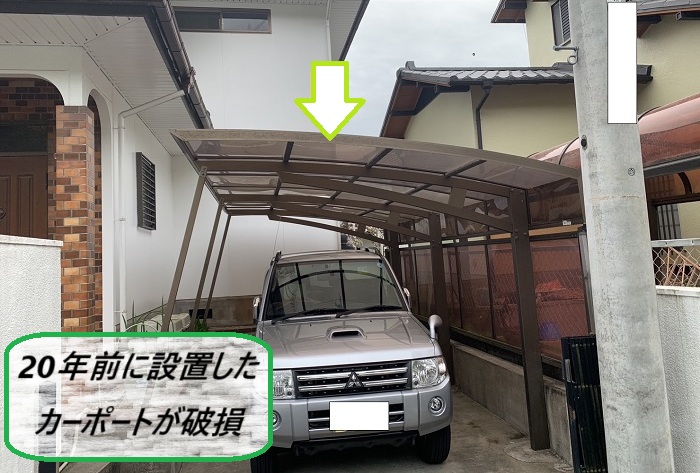 破損したと言われていたカーポートの屋根は、20年前に設置されたとのこと👂