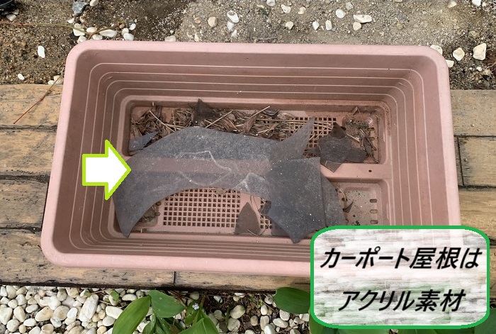 コチラが、強風で屋根材が落ちてきて壊れちゃったカーポートの屋根です💥