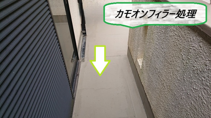 そのあと、『カチオンフィラー』という材料で、床のヒビ割れやデコボコをしっかり補修!