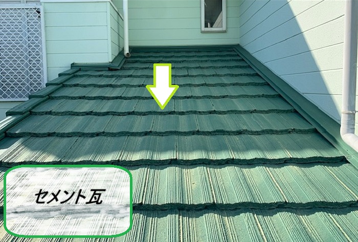 屋根にはセメント瓦が使われていて、年月とともに劣化が進んでいる状態に💦