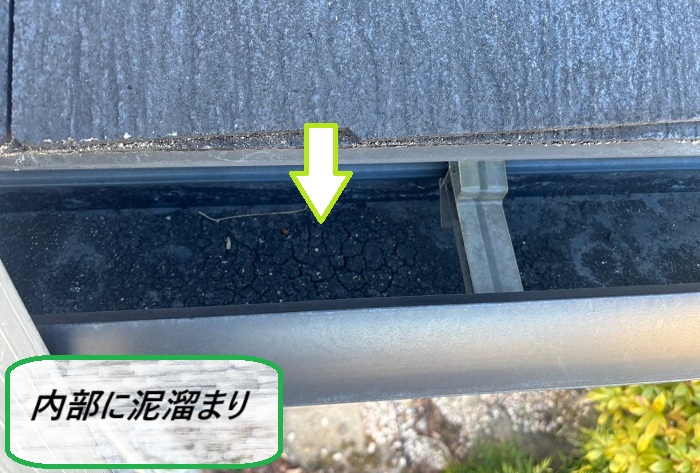 樋の中が詰まると水がうまく流れなくなって、溢れてジョイント部分から漏れる!