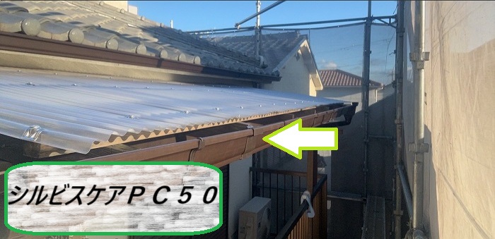 屋根の軒先には『角型の塩ビ製雨樋』が取り付けられてましたが、今はジョイント部分から水漏れしてて、雨が降るたびにポタポタ…