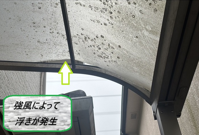 猪名川町 テラス屋根に浮き発生!飛散防止の見積もり調査