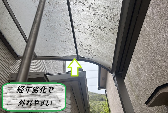 ポリカーボネート板が外れやすくなるのは、経年劣化で固定具が緩んでくるのが主な原因📢