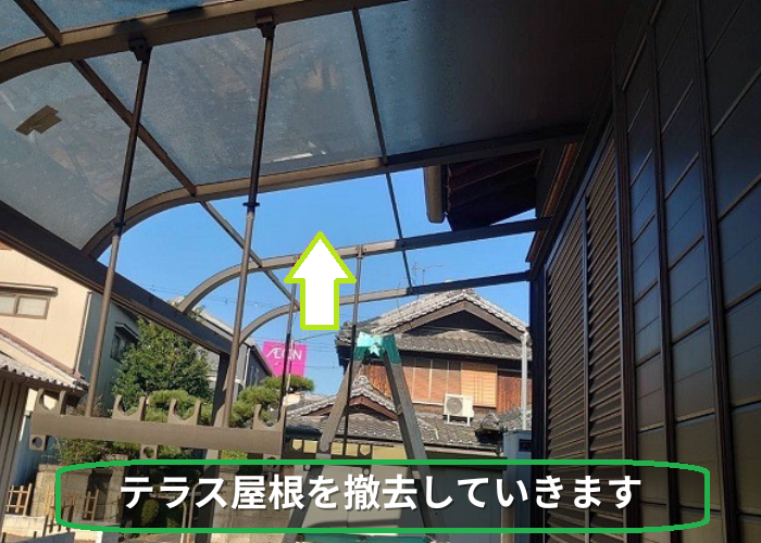テラスにはアルミ製の下地が使われていて、屋根材はポリカーボネート板でした☀️