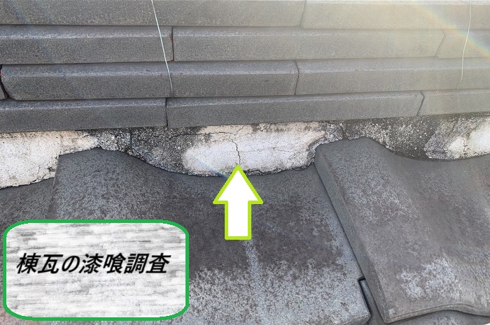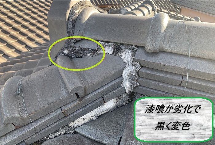 屋根材は陶器瓦で、訪問業者さんから「漆喰が剥がれてますよ〜」と指摘を受け、不安になってご相談をいただきました👂