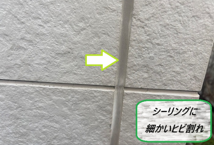 今回の現場では、外壁材のつなぎ目である『目地』に打たれたシーリング材が劣化していて、亀裂を確認🔍