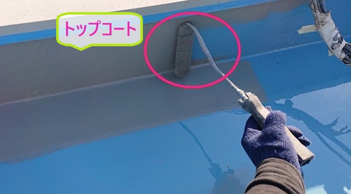 紫外線や摩耗から防水層を守るため、トップコートを塗布し仕上げ🌈