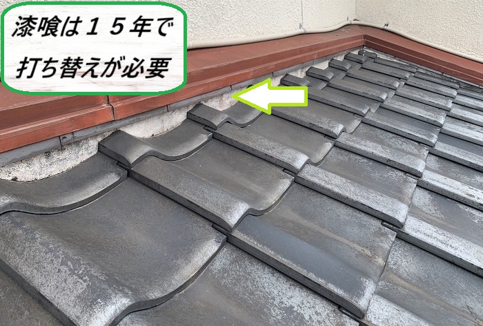 ・漆喰の剥がれ(棟瓦の固定力低下)