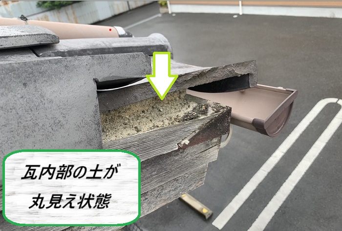 このままでは、さらに土が流出し、周囲の瓦の固定力が低下する恐れがあります⚠️
