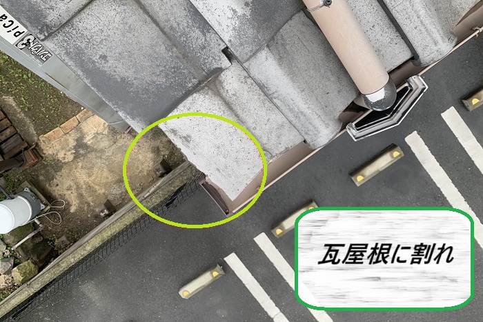 このまま放置すると、さらに割れが進行し、雨漏りや周囲の瓦のズレにつながる恐れがあるので、早急な対応が必要です!