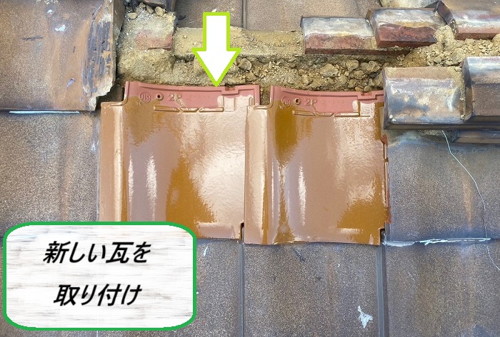既存の瓦と同じ種類のものを用意し、適切に固定📌