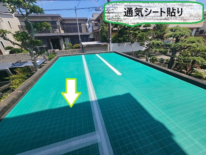 ウレタン防水通気緩衝工法に欠かせない通気シートは、建物の中にこもった湿気をしっかり外へ逃がしてくれる大事な役割を持っています(´꒳`)