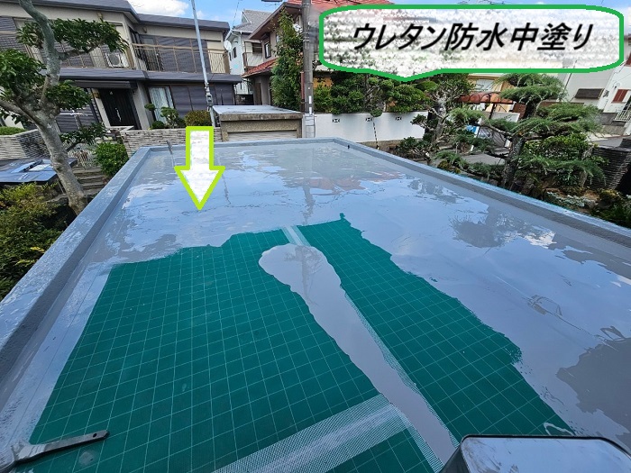次の工程は、ウレタン防水通気緩衝工法の中塗り作業(๑˃̵ᴗ˂̵)💪
