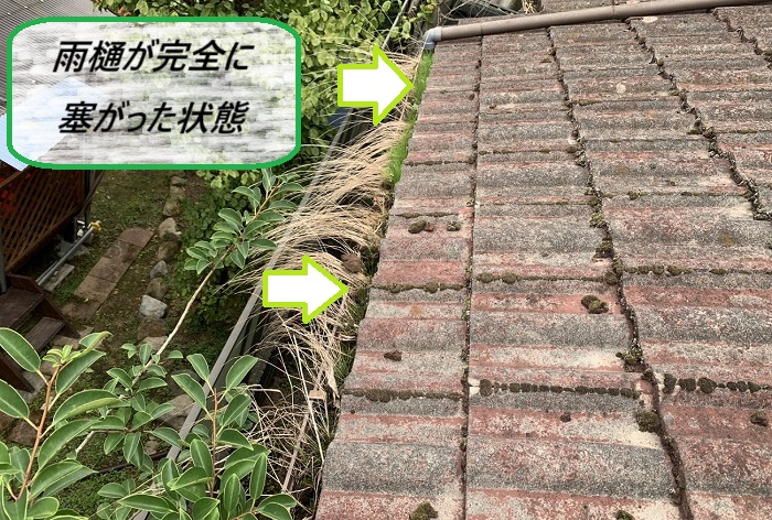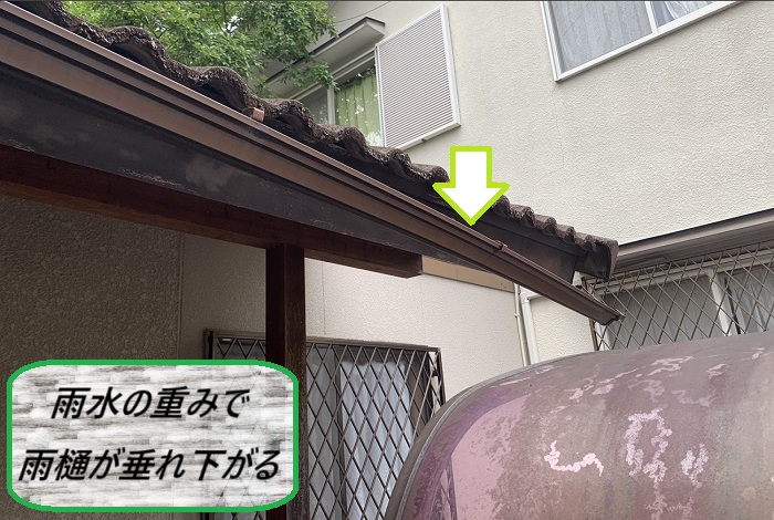 これでは雨水がうまく流れず、雨樋としての機能がまったく果たせていない状態に💀