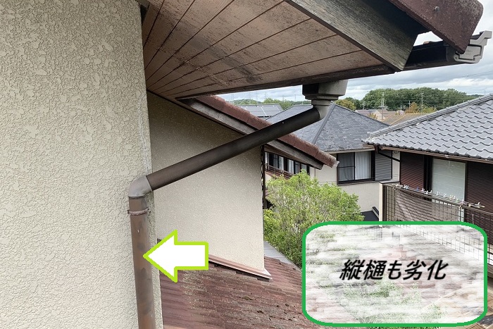 神戸市北区で水漏れが発生している雨樋に無料調査を行う現場紹介