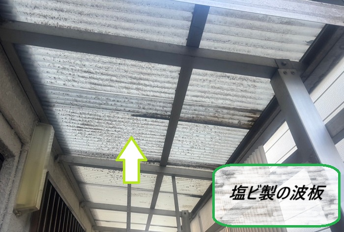 このテラス屋根には、外壁にも波板が貼られている状態でした🔍