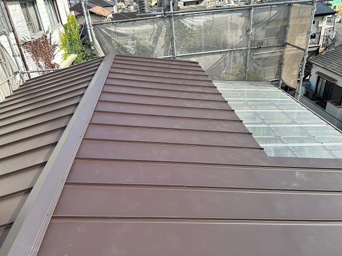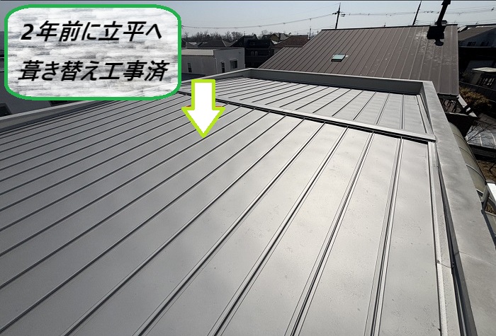 葺き替え工事から2年が経過していますが、塗膜の剥がれやサビも見られず、屋根表面はとても良好な状態を保っていましたよ~(๑˃̵ᴗ˂̵)👌
