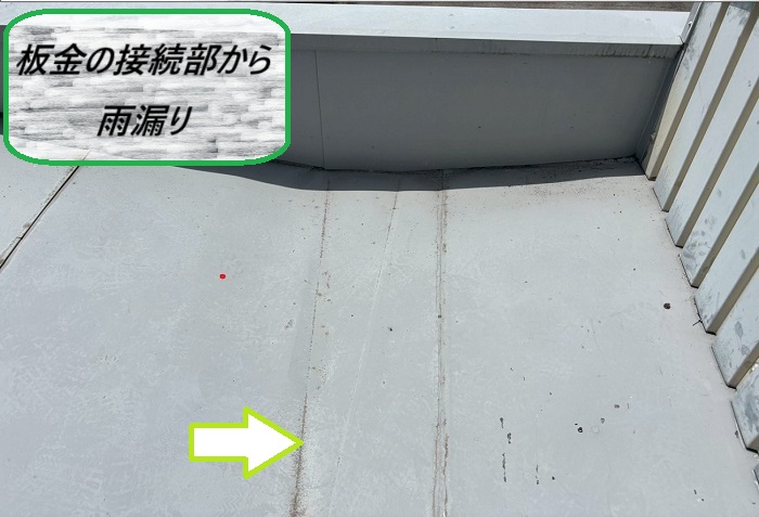 さらに、折板屋根の重なり部分にもわずかな隙間が見られ、そこからも少量ながら漏水が確認🏚️💧
