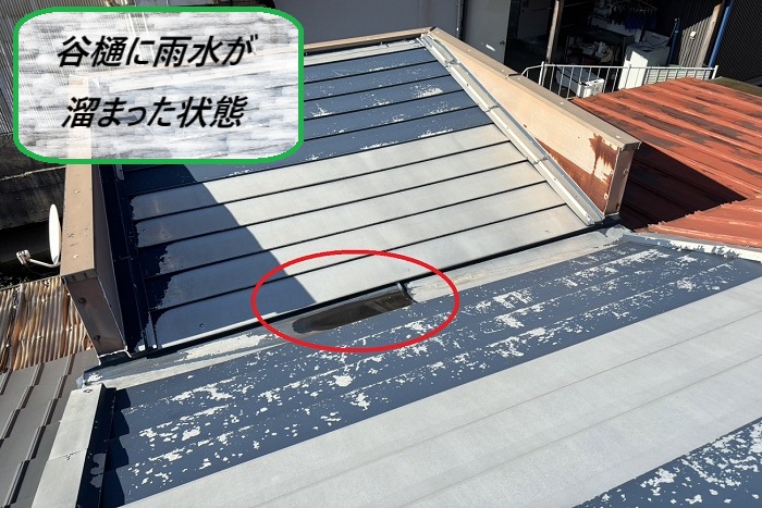 谷樋は屋根の中でも特に雨水が集中する重要な部分で、水たまりができると腐食が進みやすく、雨漏りの原因になってしまうことがとても多いんです🚫