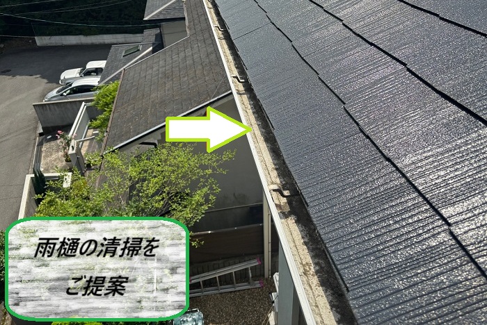 ちょうど1年前に屋根と外壁の塗装をされたばかりとのことですが、最近の雨で「軒樋から水が溢れてくる」とのお悩みがありました(。•́︿•̀。)