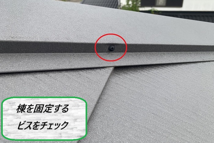屋根カバー工事で新設した屋根材は見えない部分にビス固定しているため安心ですが、仕上げ材である棟板金などは見える部分にビス固定されているため、定期点検の際には緩みがないかをしっかりチェックします🔍